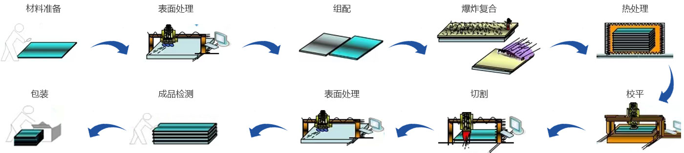 研制開發(fā)出鈦/鋼、不銹鋼/鋼、鋁/鋼等五十多種不同規(guī)格的金屬復(fù)合材料,形成了稀有、有色、黑色金屬復(fù)合材料產(chǎn)品系列